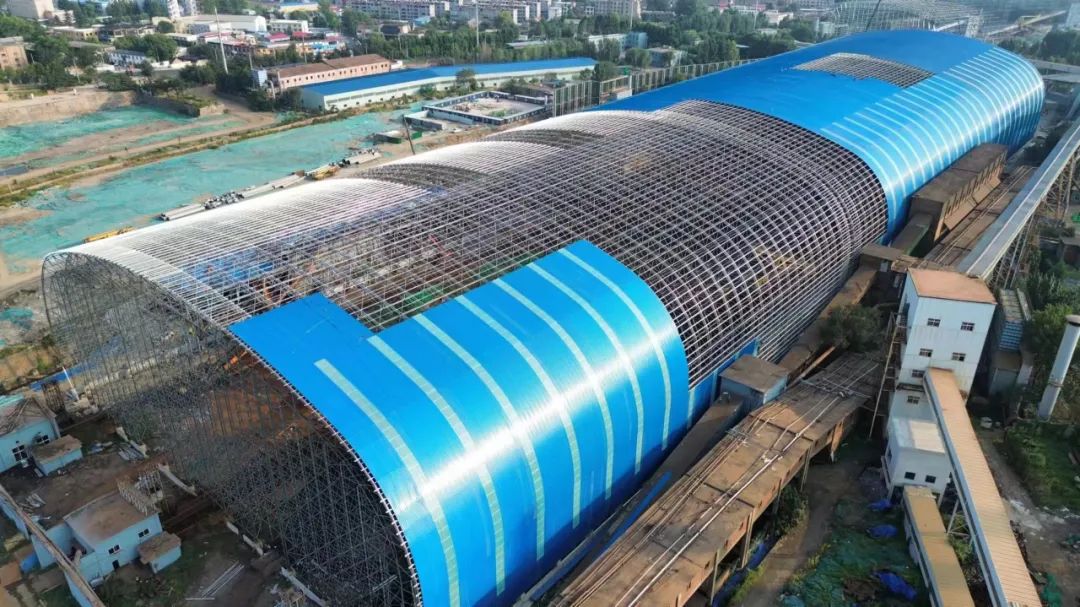【精品工程】山東鋼鐵煉鐵廠老區(qū)原料場料棚網(wǎng)架竣工